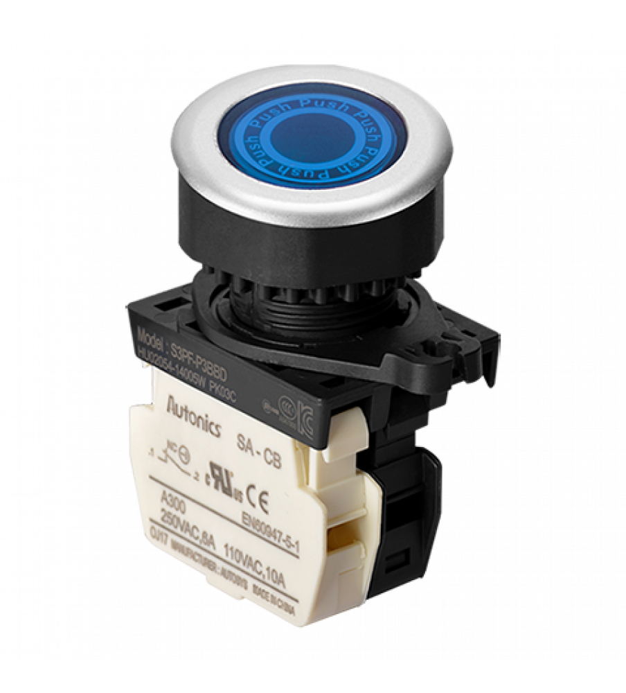 Illuminated Push Button (Flush), ?30, Blue, Normal Close, LED 100-220VAC