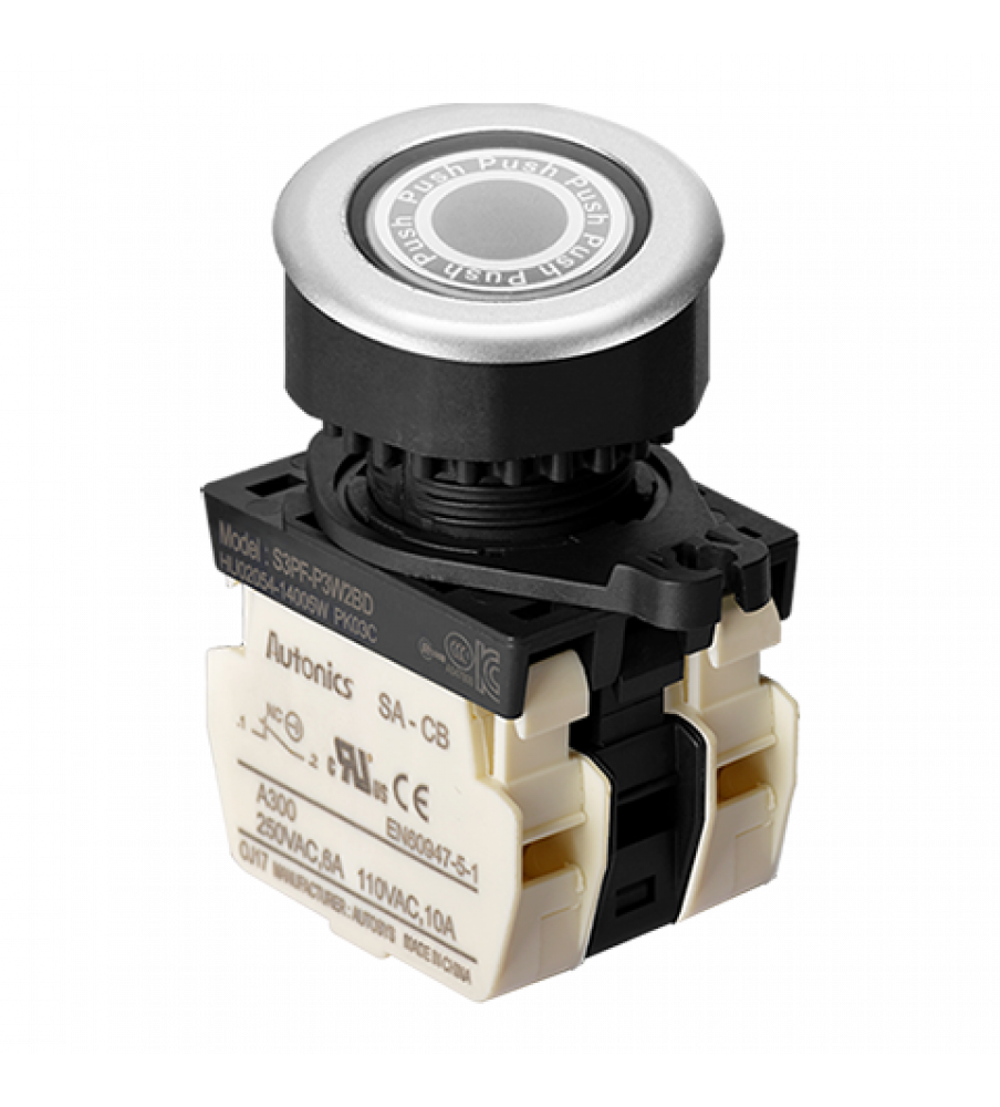 Illuminated Push Button (Flush), ?30, White, 2 Normal Close, LED 100-220VAC