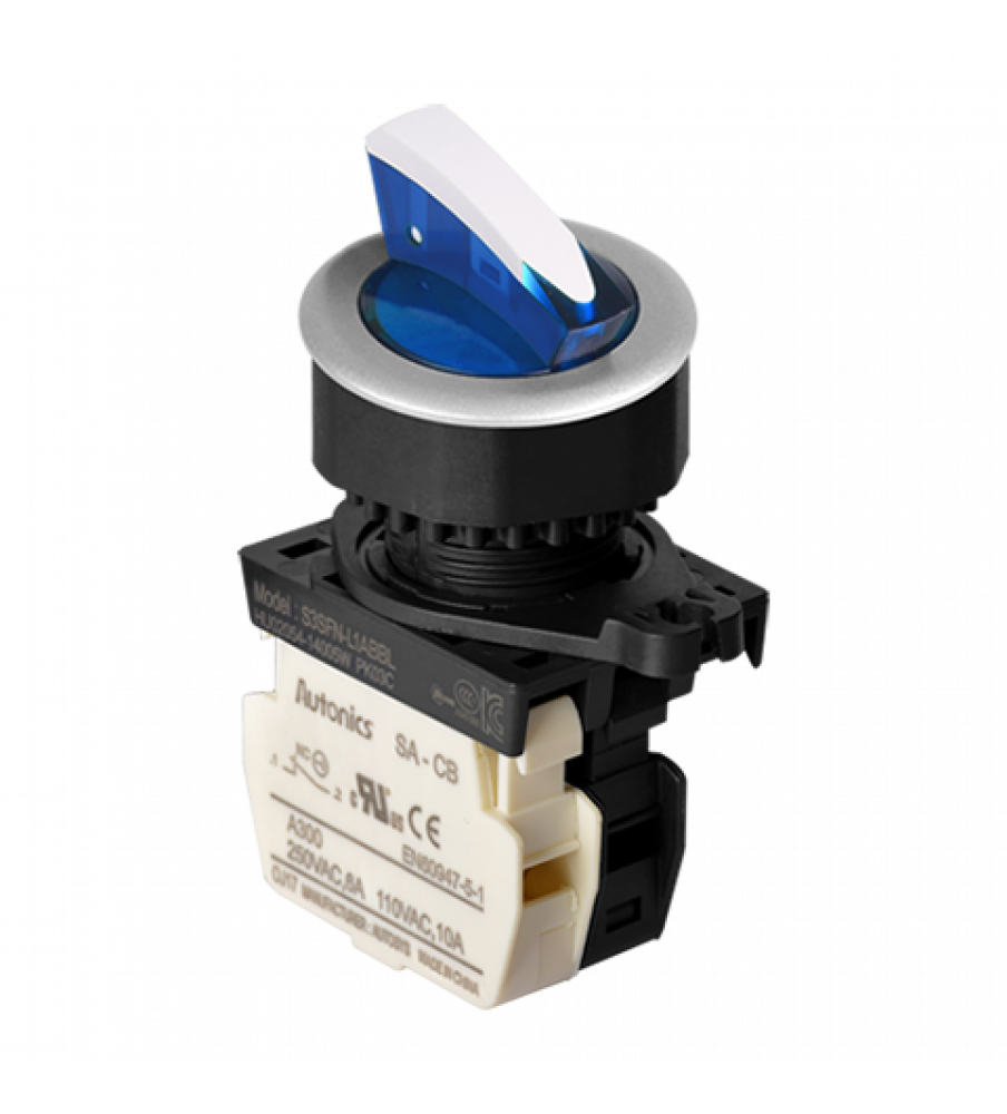 Seletor Switches ?30, 3 Positions, Auto Spring Return, Knob,WHITE, 1Normal Open, 1Normal Close, 110VAC/10A, 220VAC/5A