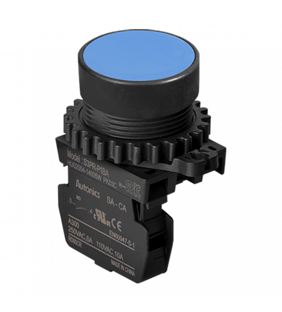 Non-Illuminated Push Button (Non-Flush), ?30, Blue, Normal Open, 110VAC/10A,220VAC/5A