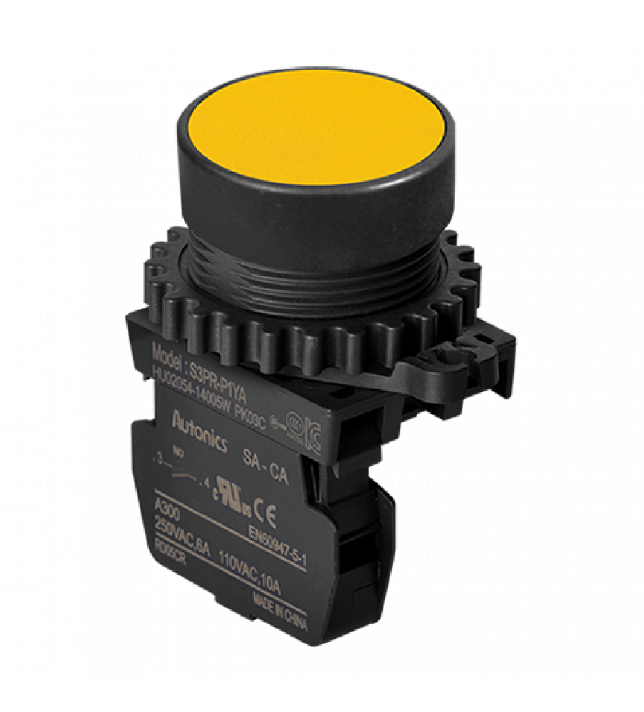 Non-Illuminated Push Button (Non-Flush), ?30, Yellow, Normal Open, 110VAC/10A,220VAC/5A