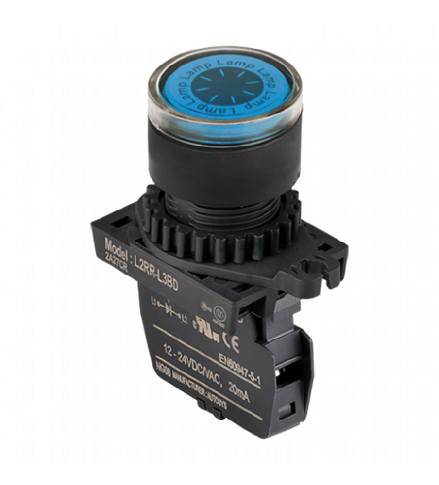 Pilot Lamp ?22/25, Blue, Flat Head, LED 100-220VAC