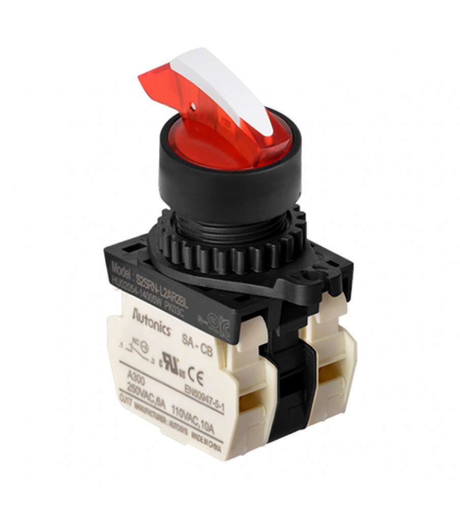 Shark Short Lever Selector Switches, Non-Flush, Illuminated, ?22/25, 2 Positions maintained Center 0? Right 90?,Red, 2 Normal Open,Multi Stack, LED 110-220VAC 50/60Hz