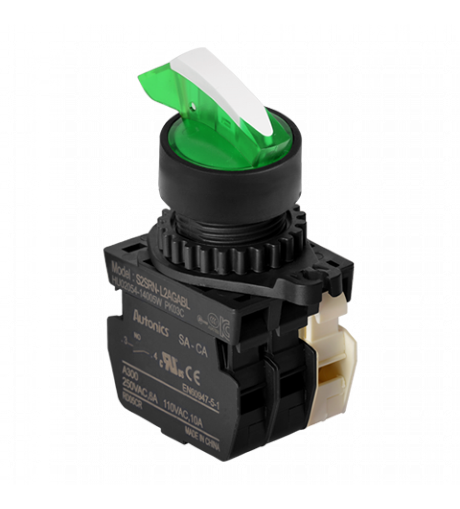 Shark Short Lever Selector Switches, Non-Flush, Illuminated, ?22/25, 3 Positions maintained Left 90? Right 90?,Red, 2 Normal Open, Modular Type, LED 110-220VAC 50/60Hz