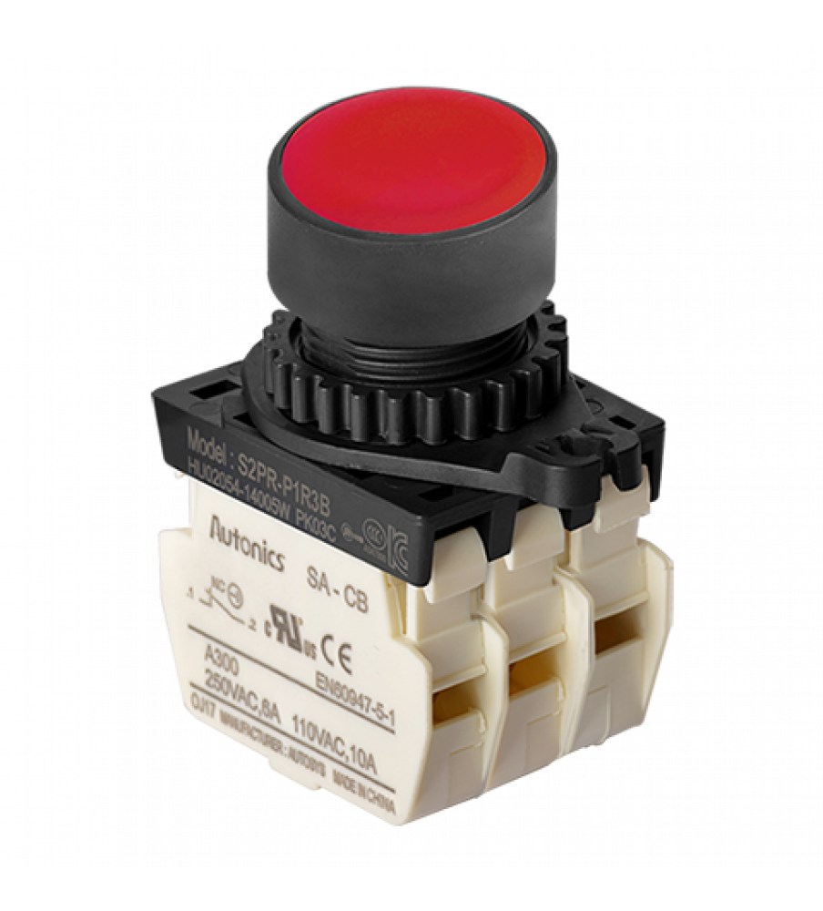 Non-Illuminated Push Button (Non-Flush), ?22/25, Red, 3 Normal Close, 110VAC/10A,220VAC/5A