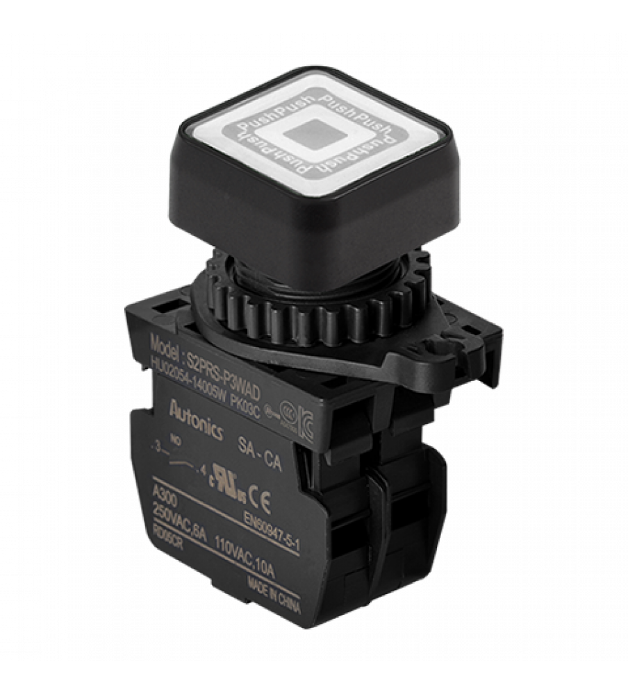 SquareType Push Button (Non-Flush/Illuminated), ?22/25, White, Normal Open, Modular Type, LED 100-220VAC