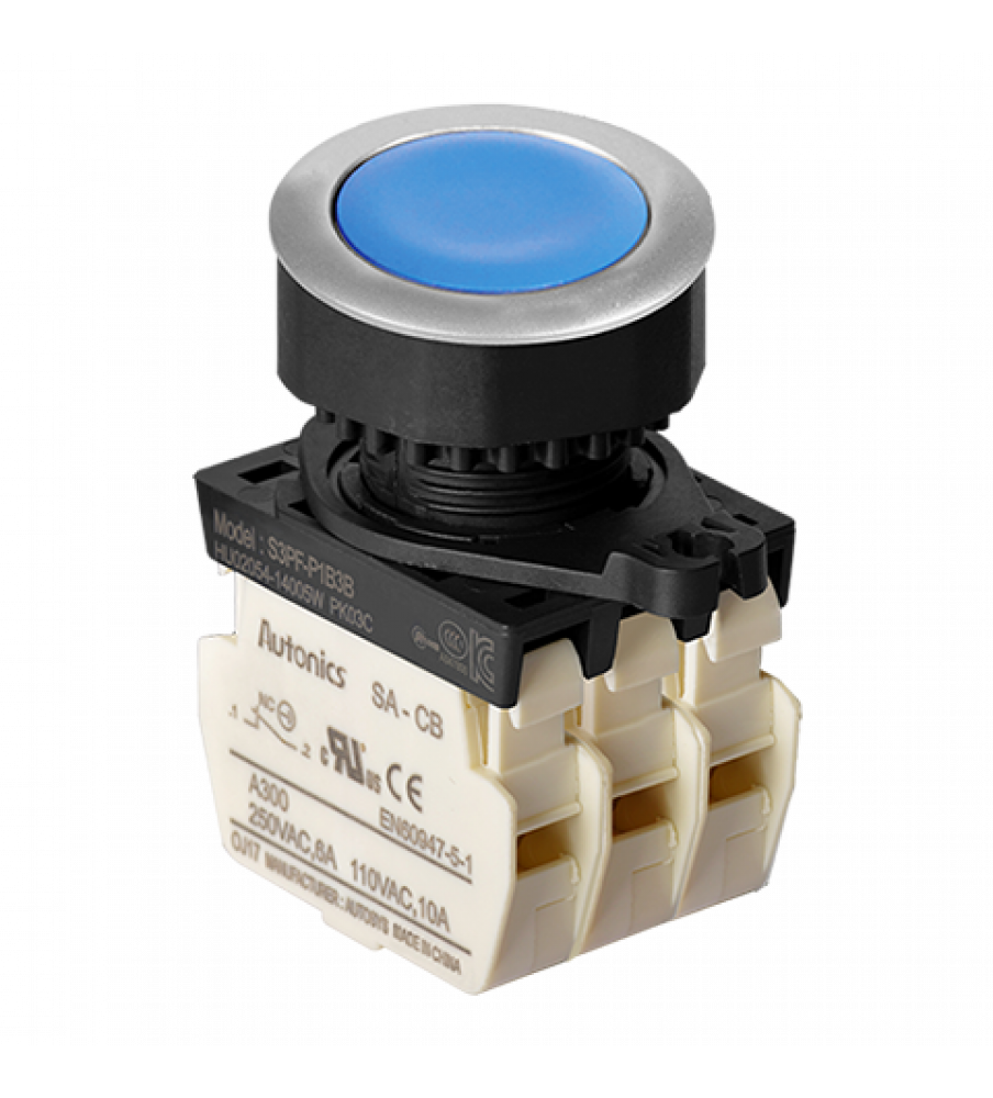 Non-Illuminated Push Button (Flush), ?30, Blue, 3 Normal Close, 110VAC/10A,220VAC/5A