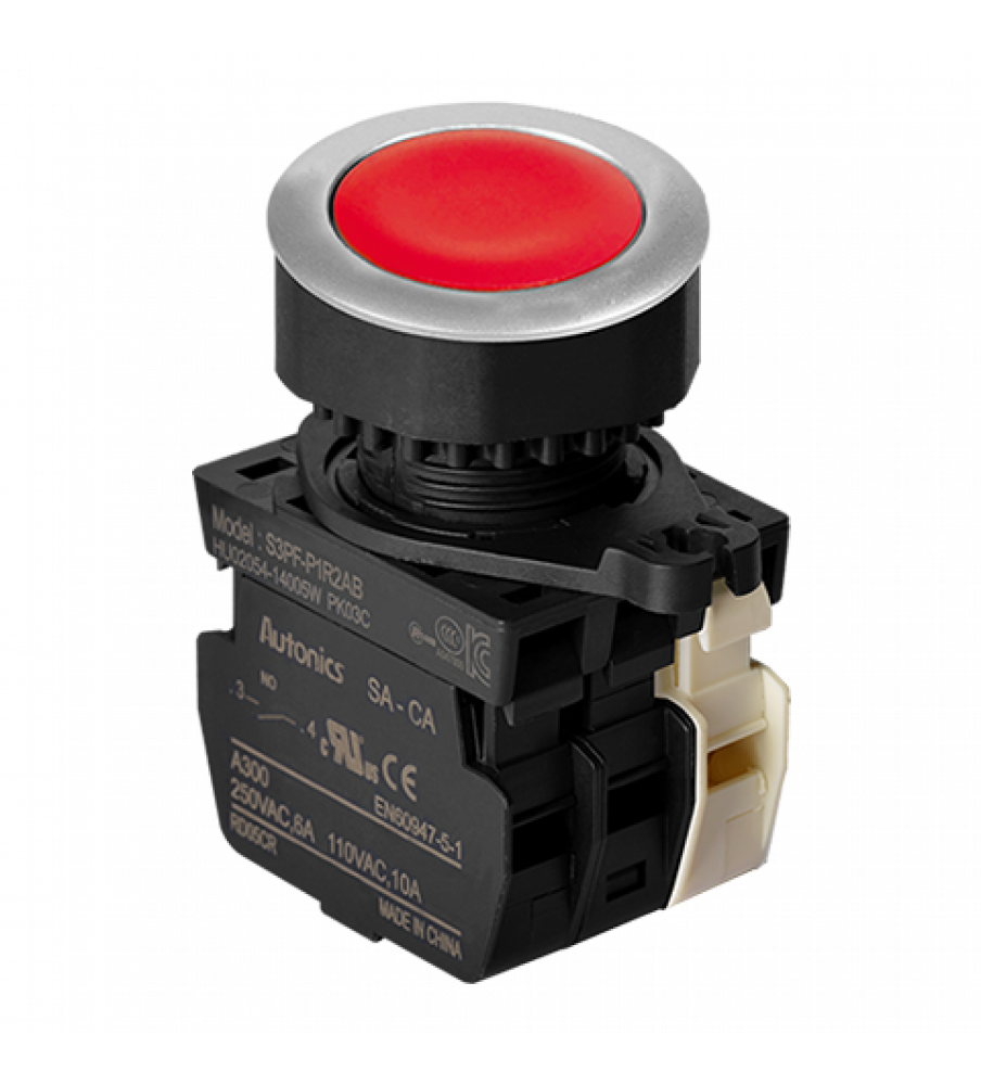 Non-Illuminated Push Button (Flush), ?30, Red, 2 Normal Open, 1 Normal Close, 110VAC/10A,220VAC/5A