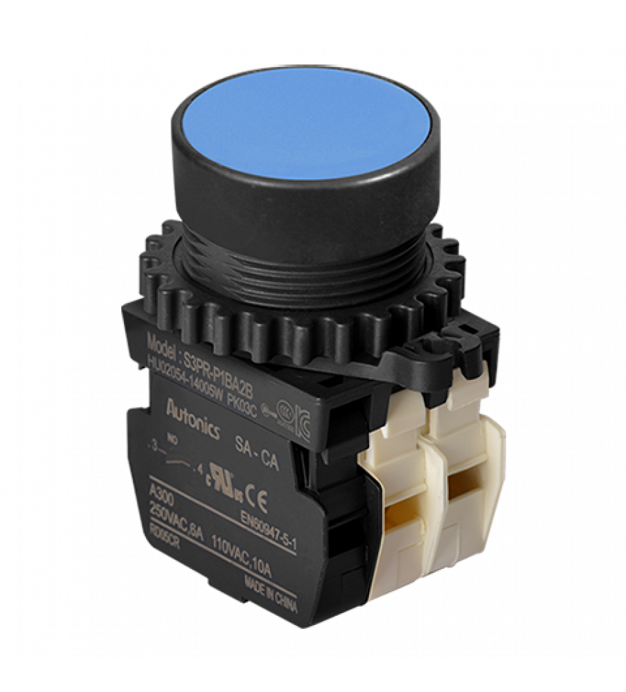 Non-Illuminated Push Button (Non-Flush), ?30, Blue,1 Normal Open, 2 Normal Close, 110VAC/10A,220VAC/5A