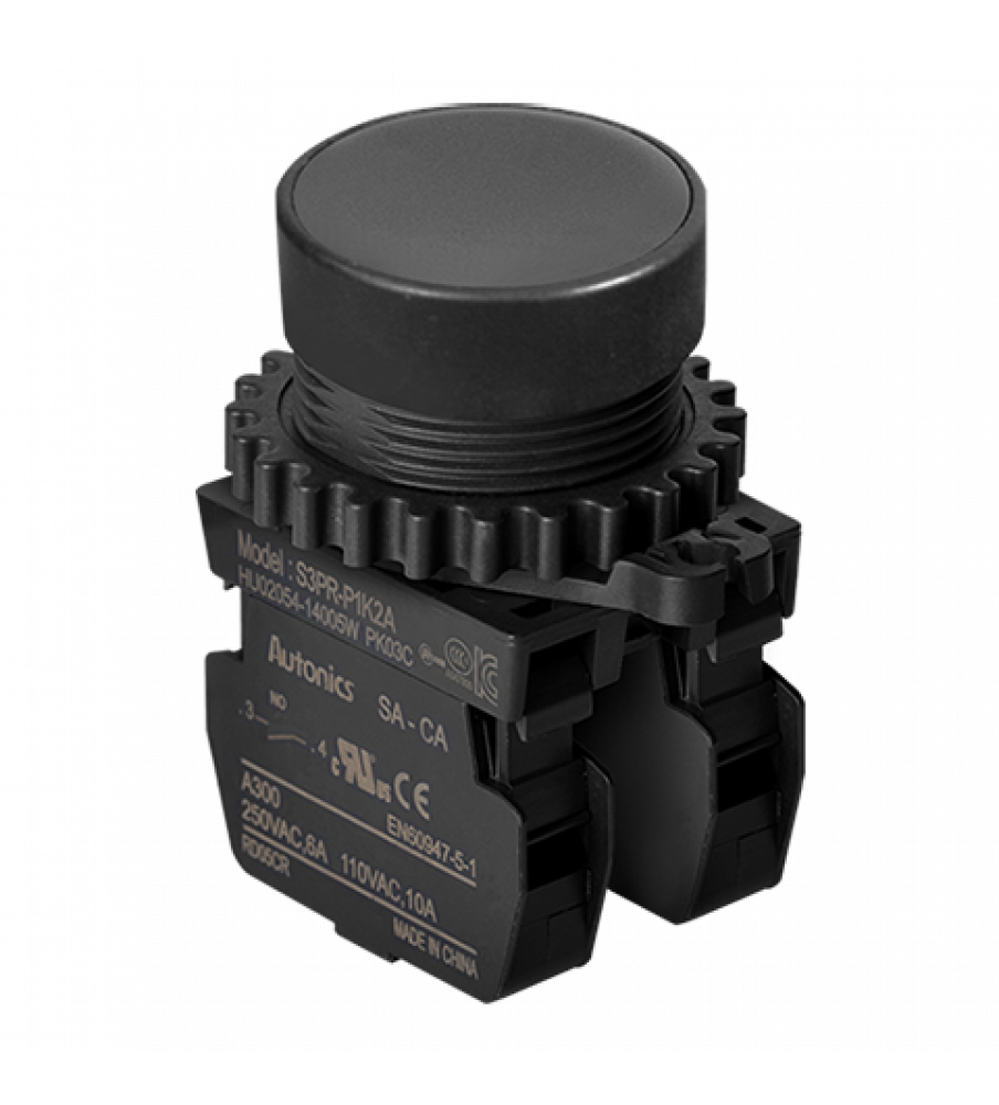 Non-Illuminated Push Button (Non-Flush), ?30, Black, 2 Normal Open, 110VAC/10A,220VAC/5A