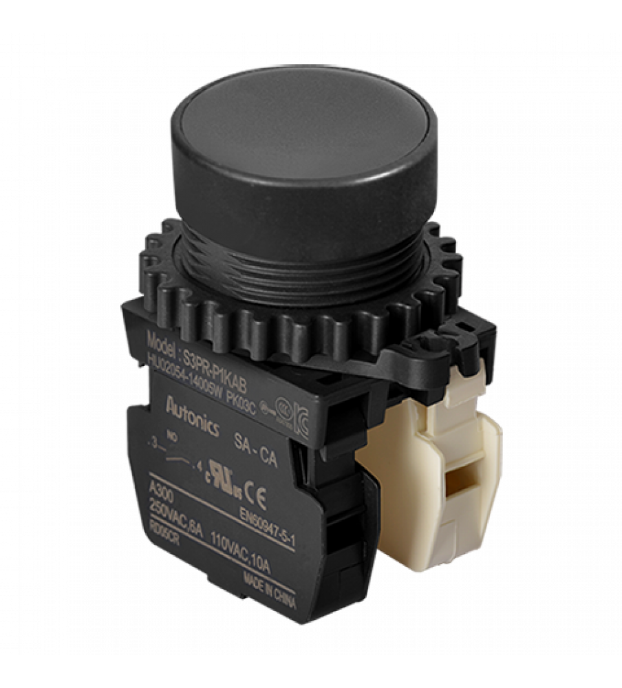 Non-Illuminated Push Button (Non-Flush), ?30, Black, 1 Normal Open, 1 Normal Close, 110VAC/10A,220VAC/5A