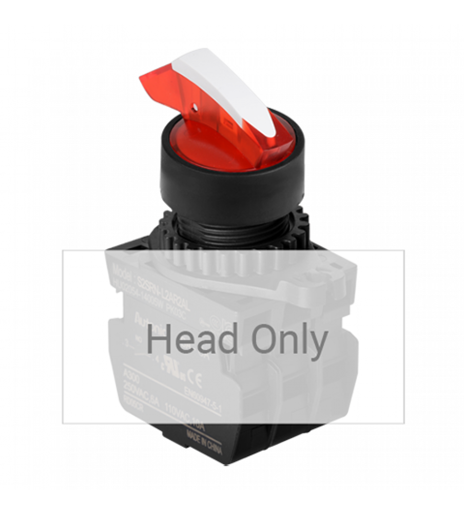 Tags: Shark Long Lever Selector Switches, Non-Flush, Illuminated, ?22/25, 3 Positions maintained two ways Left (-90)? Right (90?), Red, Head