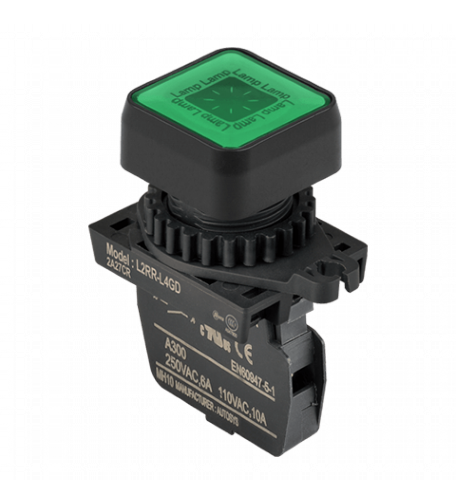 Tags: Pilot Lamp, Square type, Non-Flush, Illuminated, ?22/25, Green, LED 12-24VDC/AC