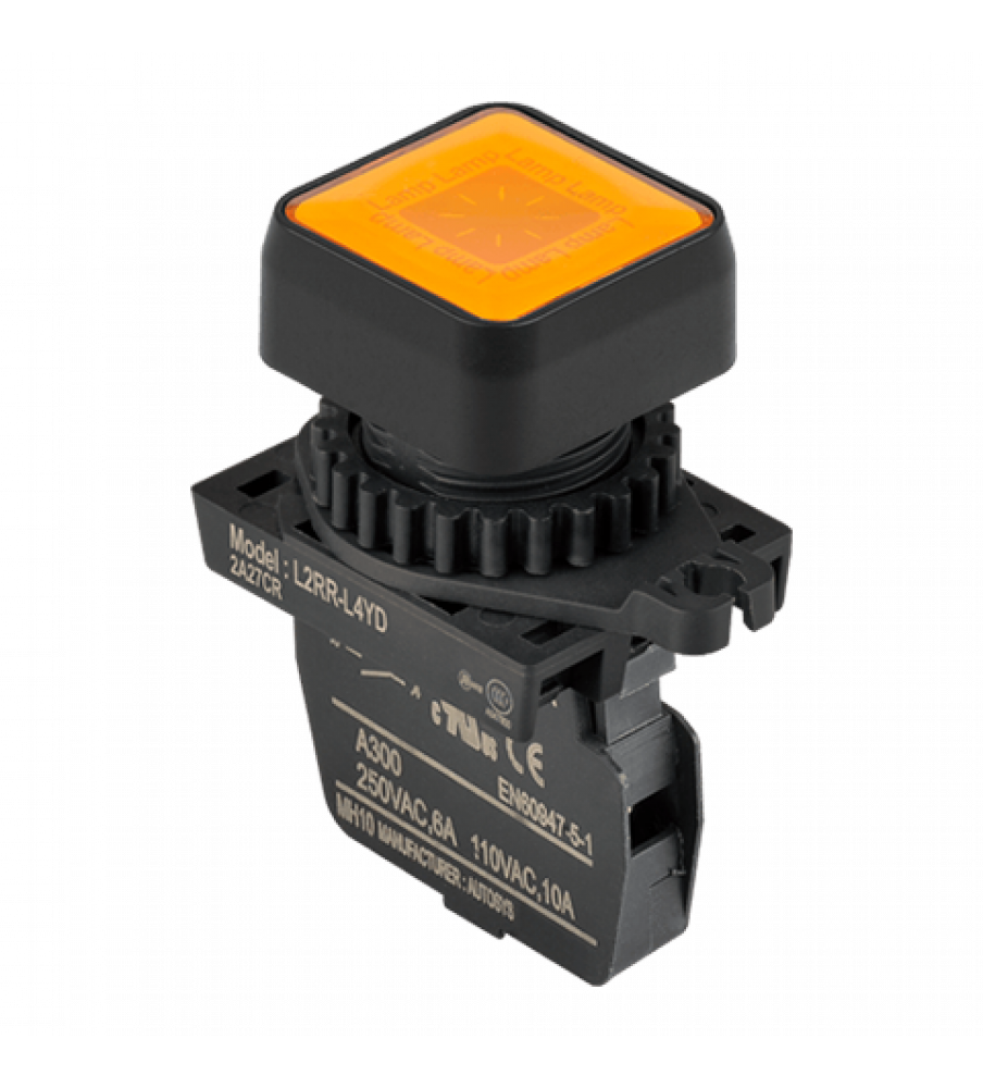 Tags: Pilot Lamp, Square type, Non-Flush, Illuminated, ?22/25, Yellow, LED 12-24VDC/AC