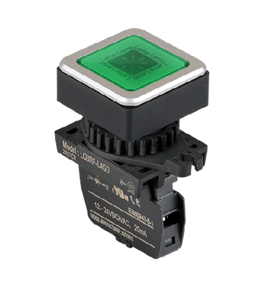Tags: Pilot Lamp, Square type, Flush, Illuminated, ?30, Green, LED 12-24VDC/AC