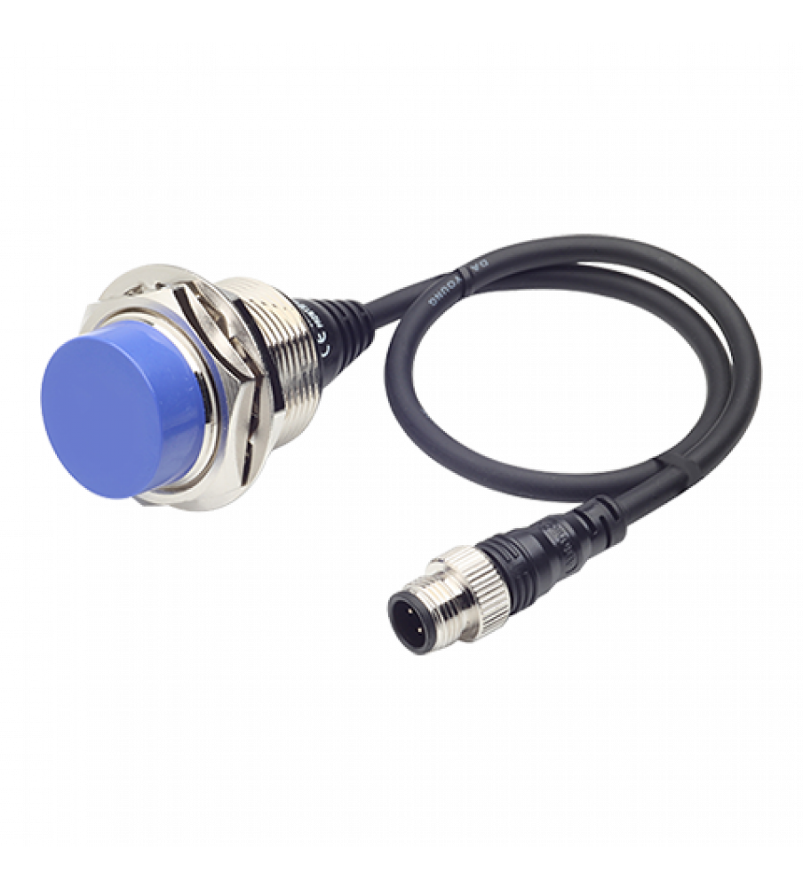 Sensor, Inductive Prox, 30mm Round, Non Shielded, 25mm Sensing, NPN, NO, 3 Wire, Cable&Connector, 10-30 VDC