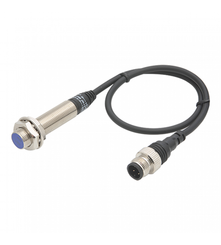 Sensor, Inductive Prox, 12mm Round Long, Shielded, 4mm Sensing, PNP, NO, 3 Wire, Cable&Connector, 10-30 VDC