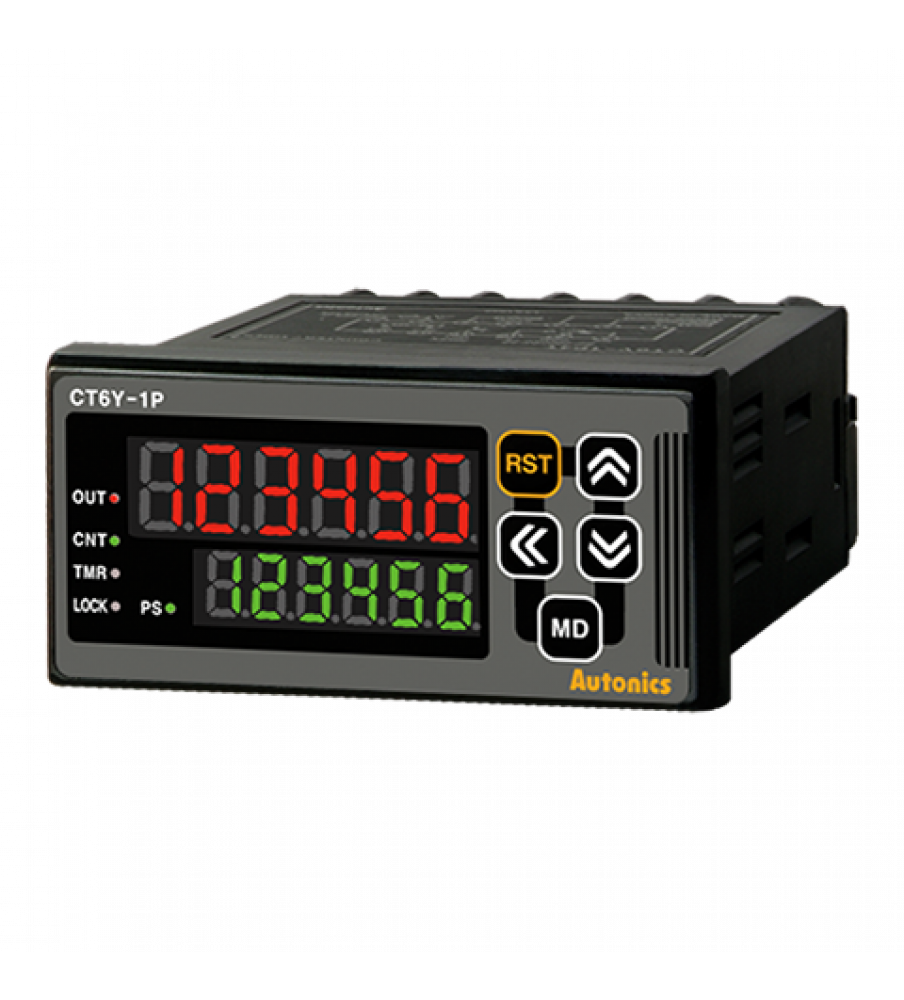 Counter/Timer, W72xH36mm, 6-Digit, LED, 1 Preset, PNP or NPN Input, Prescale value setting, Relay SPDT(1c) 250VAC 3A, NPN Open Collector Output, 100-240 VAC