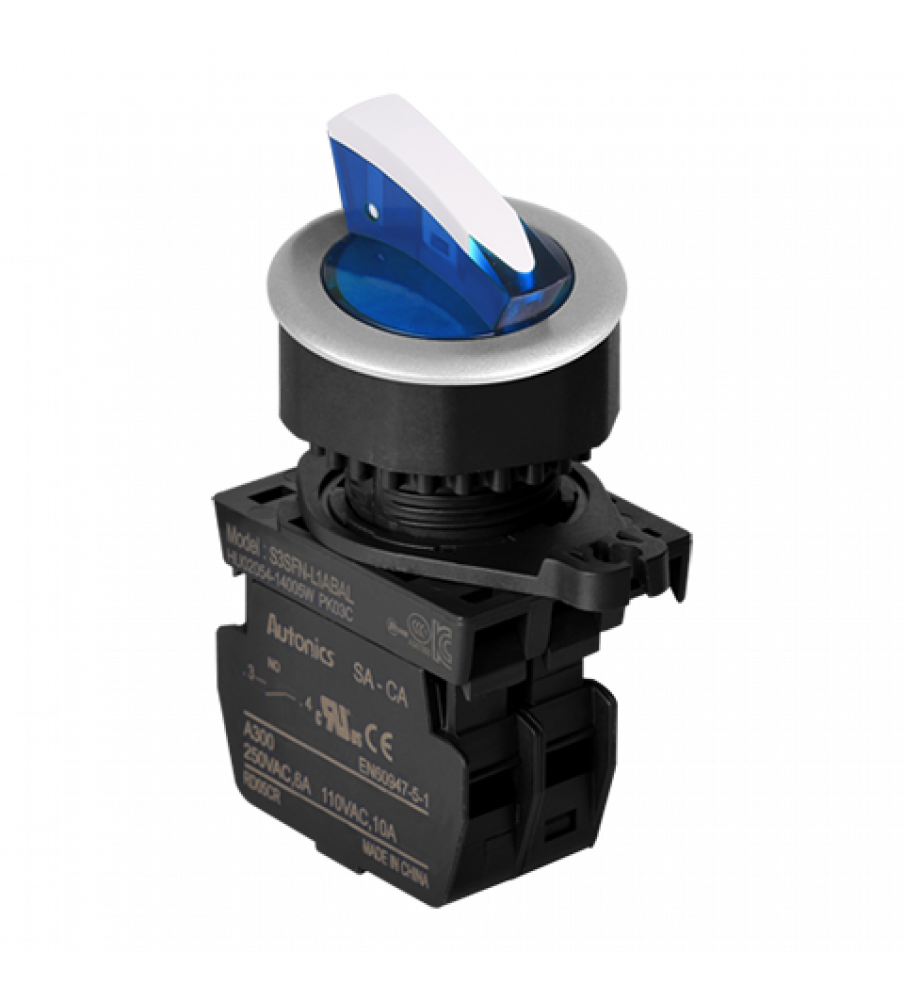 Seletor Switches ?30, 3 Positions, Auto Spring Return, Knob, WHITE, 2 Normal Close, 110VAC/10A, 220VAC/5A