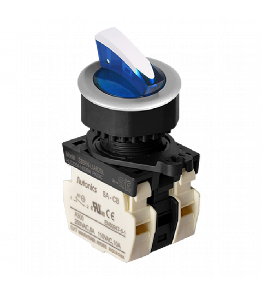 Seletor Switches ?30, 3 Positions, Auto Spring Return, Knob, RED, 1Normal Open, 1Normal Close, 110VAC/10A, 220VAC/5A
