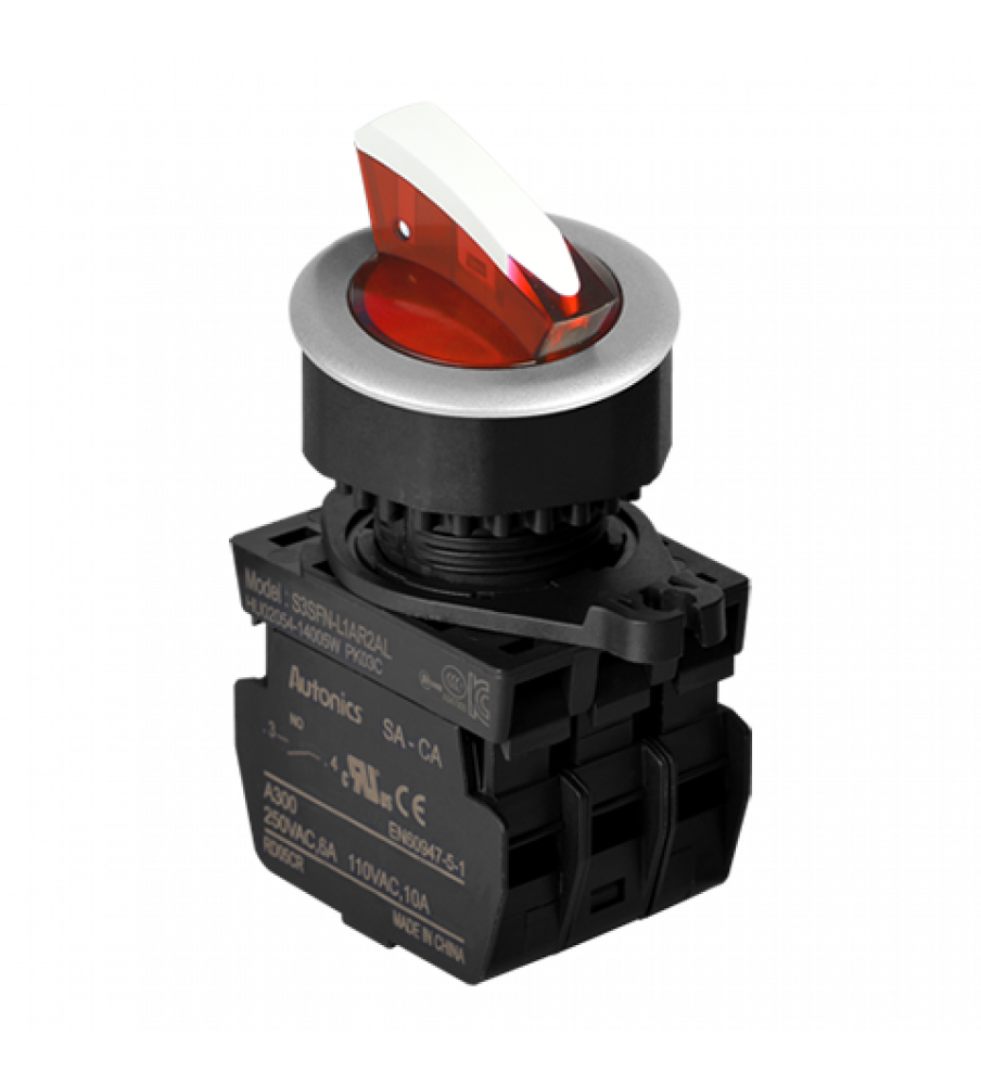 Seletor Switches ?30, 3 Positions, Auto Spring Return, Lever, WHITE, 2 Normal Open, 110VAC/10A, 220VAC/5A