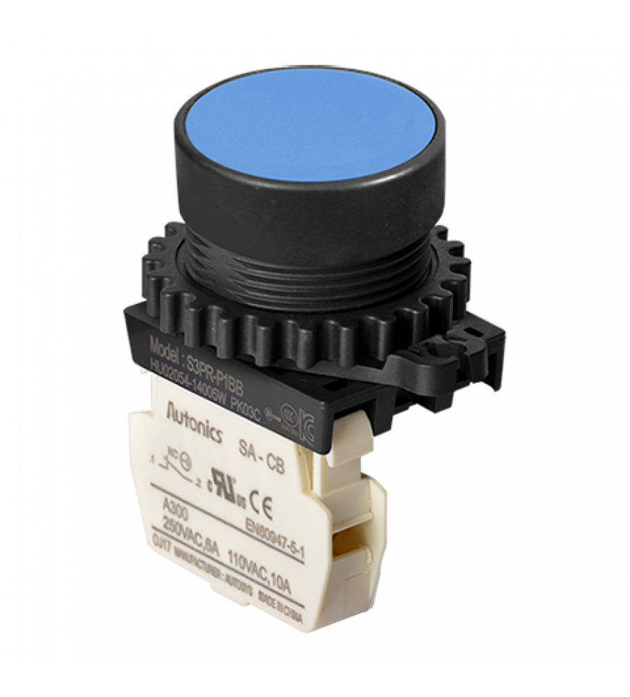 Non-Illuminated Push Button (Non-Flush), ?30, Blue, Normal Close, 110VAC/10A,220VAC/5A