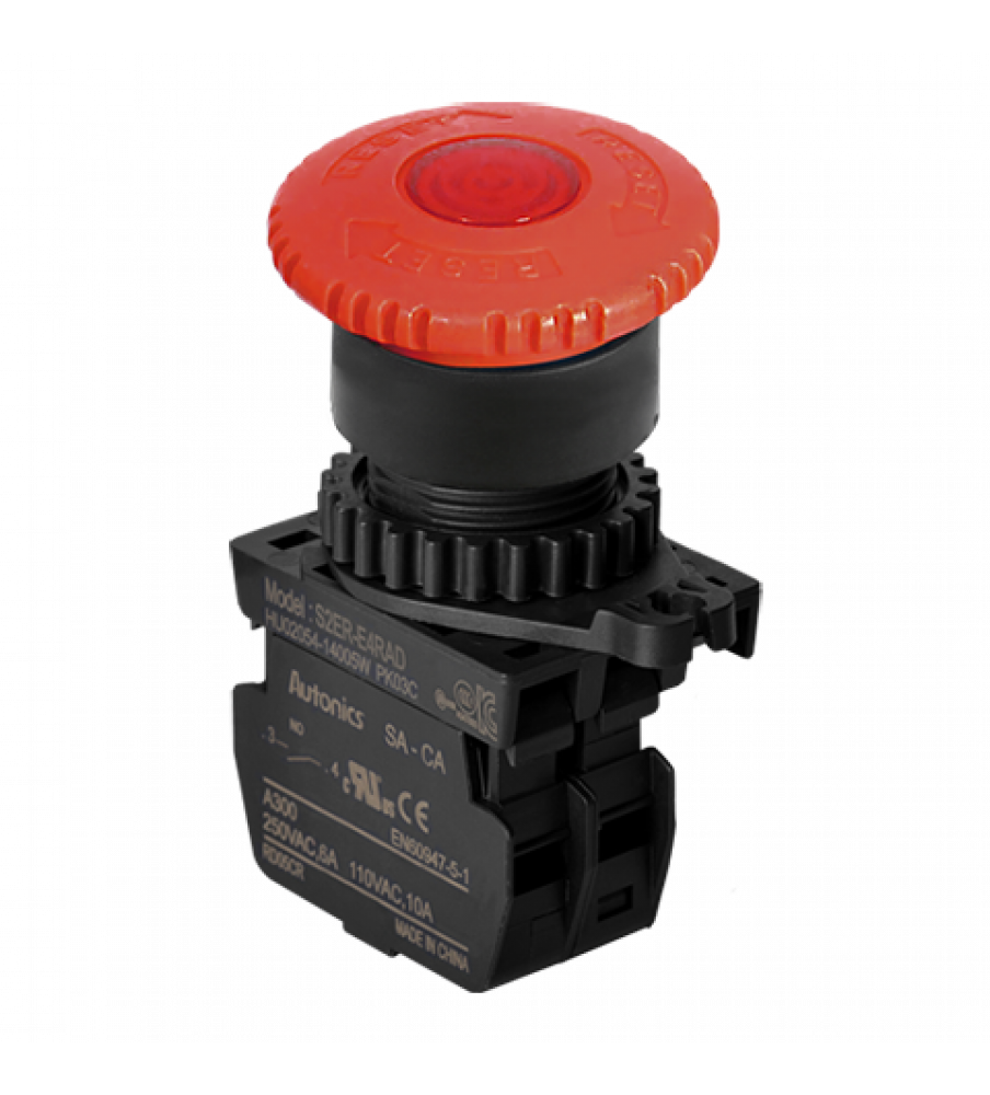 Illuminated Emergency Stops ?22/25, RED, Haed ?40, 1 Normal Open, LED 12-30VDC/AC
